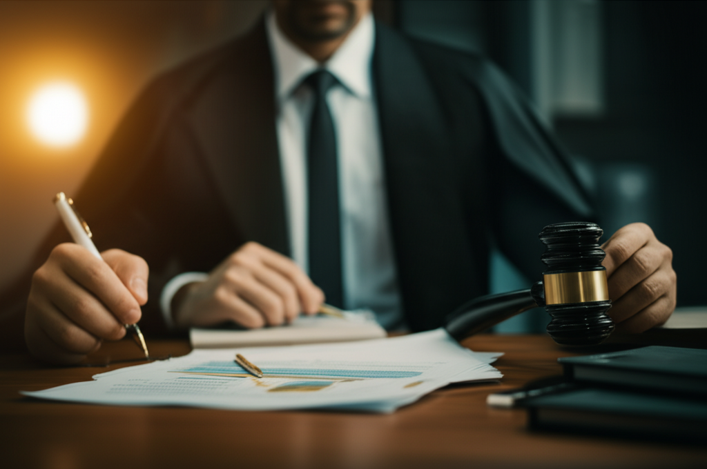 Advogado em seu escritório, simbolizando autoridade e profissionalismo.